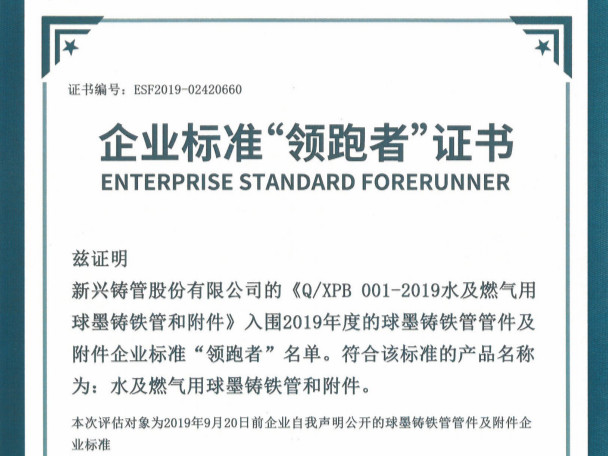 新興鑄管榮獲企業標準“領跑者”榮譽