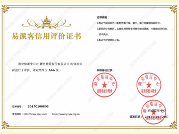 據悉,商業信用中心隸屬于國務院國有資產監督管理委員會,是國家最具權威的企業信用等級評價機構之一,其信用評級具有權威性、公允性。“易派客信用評價認證”是中石化招標的重要評分條款,是物資招投標活動和易派客平臺招標中重要的衡量依據。在公司銷售、技術、生產、質管、采購、財務等各部門的共同配合下,公司圓滿通過了商業信用中心對我公司在中石化易派客電子招標平臺的信用認證審核,榮獲中石化易派客信用認證AAA級“易派客信用評價證書”。